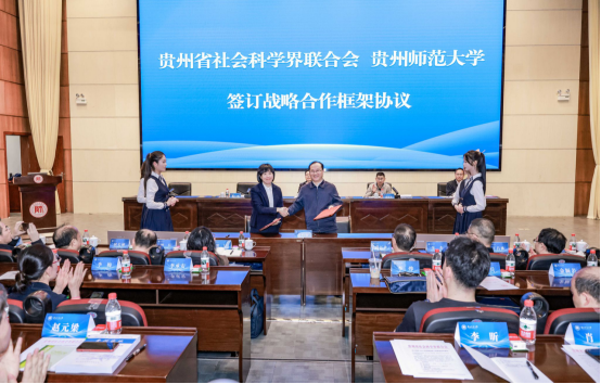 4月20日下午,2026年《贵州咨政》工作推进会在贵州师范大学东区会议中心一楼学术报告厅召开。省社科联党组书记、副主席范省伟讲话,贵州师范大学校长张绍东致辞。省社科联党组成员、副主席黄昌祥与我校副校长刘瑾分别代表两家单位签订战略合作框架协议。省社科联党组成员、秘书长丁凤鸣主持会议。贵州工程应用技术学院党委书记熊星、贵阳康养职业大学党委书记冉江舟等高校领导出席会议。